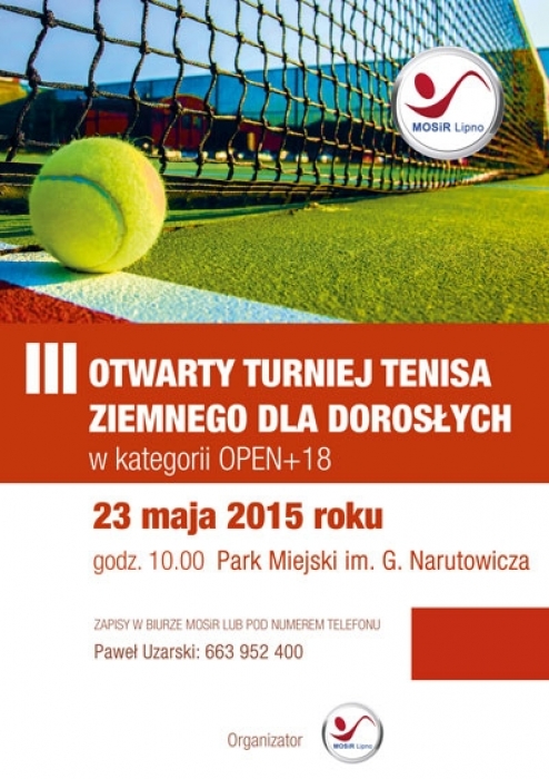 Turniej odbędzie się w dniu 23.05 2015r. ( sobota ) o godz: 10:00 na kortach w Parku Miejskim im. Gabriela Narutowicza w kategorii Open + 18. Zapisy pod numerem telefonu - Paweł Uzarski 663-952-400 UDZIAŁ BEZPŁATNY